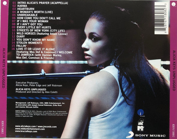 1. Alicia Keys - Intro Alicia's Prayer (Acappella) 1:112. Alicia Keys - Karma 2:103. Alicia Keys - Heartburn 3:034. Alicia Keys - A Woman's Worth 3:305. Alicia Keys - Unbreakable 4:346. Alicia Keys - How Come You Don't Call Me 5:237. Alicia Keys - If I Was Your Woman 4:048. Alicia Keys - If I Ain't Got You 4:069. Alicia Keys - Every Little Bit Hurts 4:0110. Alicia Keys - Streets Of New York (City Life) 7:3511. Alicia Keys, Adam Levine - Wild Horses 6:0412. Alicia Keys - Diary 5:5313. Alicia Keys - You Don't Know My Name 3:3514. Alicia Keys - Stolen Moments 5:1415. Alicia Keys - Fallin' 5:10. Love It Or Leave It Alone / Welcome To Jamrock 6:46
