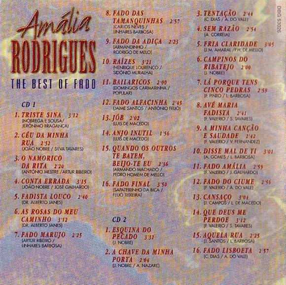 1-1. Triste Sina 3:121-2. Céu Da Minha Rua 2:521-3. O Namorico Da Rita 2:201-4. Conta Errada 3:151-5. Fadista Louco 2:401-6. As Rosas Do Meu Caminho 3:121-7. Fado Marujo 2:251-8. Fado Das Tamanquinhas 2:571-9. Fado Da Adiça 2:231-10. Raízes 3:211-11. Bailaricos 2:001-12. Fado Alfacinha 2:451-13. Jób 2:021-14. Anjo Inútil 1:561-15. Quando Os Outros Te Batem, Beijo-Te Eu 2:361-16. Fado Final 3:502-1. Esquina Do Pecado 3:312-2. A Chave Da Minha Porta 2:042-3. Tentação 2:442-4. Sem Razão 2:542-5. Fria Claridade 3:052-6. Campinos Do Ribatejo 2:002-7. Lá Porque Tens Cinco Pedras 2:592-8. Avé Maria Fadista 2:412-9. A Minha Canção E Saudade 2:422-10. Disse Mal De Ti 3:012-11. Fado Amália 2:592-12. Fado Do Ciume 2:562-13. Cansaço 3:042-14. Que Deus Me Perdoe 3:122-15. Aquela Rua 2:252-16. Fado Lisboeta 2:57