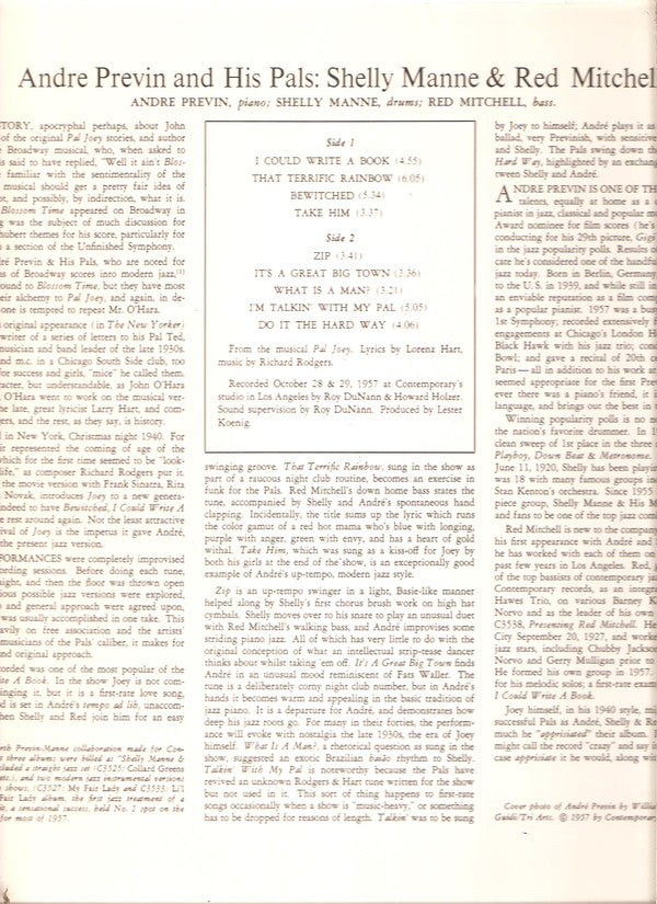 Alternate title for this LP is Vol. 1 "Pal Joey"
