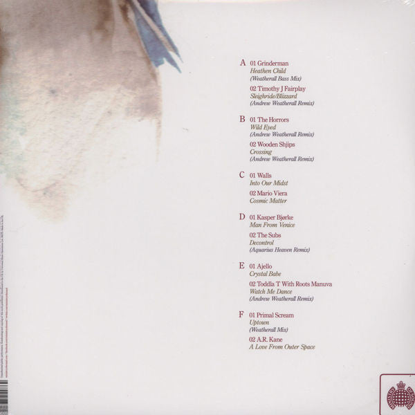 A1. Grinderman - Heathen Child (Weatherall Bass Mix) A2. Tim Fairplay - Sleighride / Blizzard (Andrew Weatherall Remix) B1. The Horrors - Wild Eyed (Andrew Weatherall Remix) B2. Wooden Shjips - Crossing (Andrew Weatherall Remix) C1. Walls (2) - Into Our Midst C2. Mario Viera - Cosmic Matter D1. Kasper Bjørke - Man From Venice D2. The Subs - Decontrol (Aquarius Heaven Remix) E1. Ajello - Crystal Babe E2. Toddla T, Roots Manuva - Watch Me Dance (Andrew Weatherall Remix) F1. Primal Scream - Uptown (Weatherall Mix) F2. A.R. Kane - A Love From Outer Space