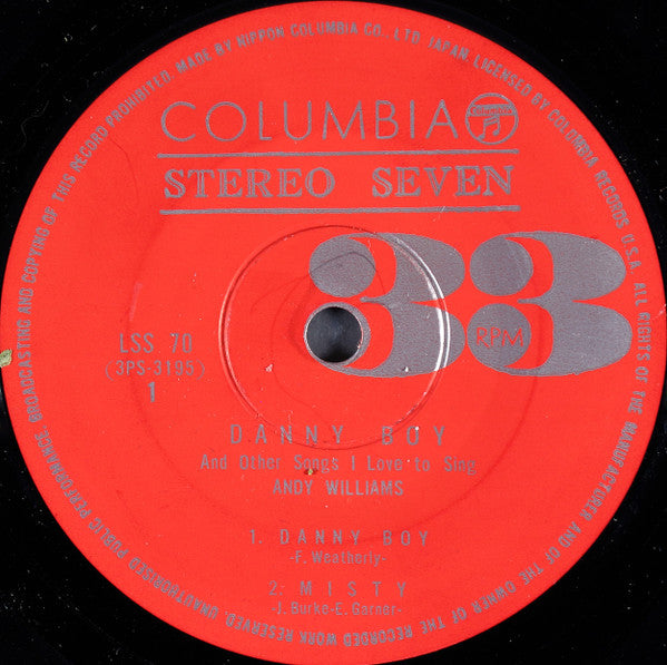 Andy Williams - Danny Boy And Other Songs I Love To Sing (7")