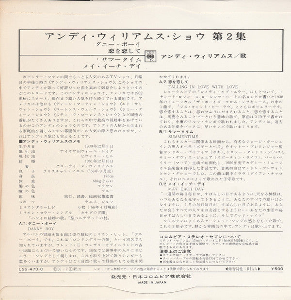 Andy Williams - The Andy Williams Show Vol. 2 (7", EP)
