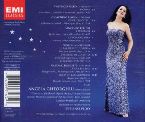 1. Aria: Casta Diva (Bellini: Norma) 2. Cabaletta: 'Ah Bello A Me Ritorna' (Bellini: Norma) 3. Scena - 'S'allontanano Alfin!'... (Rossini: Guglielmo Tell) 4. Romanza: 'Selva Opaca' (Rossini: Guglielmo Tell) 5. Aria: 'Qui La Voce Sua Soave' ... 'O Rendetemi La Speme' (Bellini: I Puritani) 6. Cabaletta: 'Vien Diletto, È In Ciel La Luna' (Bellini: I Puritani) 7. Aria: 'Ah! Non Credea Mirarti' (Bellini: La Sonnambula) 8. Cavatina: 'Una Voce Poco Fa' (Rossini: Il Barbiere Di Siviglia) 9. 'Lo Sono Docile' (Rossini: Il Barbiere Di Siviglia) 10. Scena: 'L'ora Fatal S'appressa' (Rossini: L'Assedio Di Corinto) 11. 'Giusto Ciel! In Tal Periglio' (Rossini: L'Assedio Di Corinto) 12. Scena: 'Piangete Voi' (Donizetti: Anna Bolena) 13. Aria: 'Al Dolce Guidami' (Donizetti: Anna Bolena) 14. Aria: 'Regnava Nel Silenzio'... (Donizetti: Lucia Di Lamermoor) 15. Cabaletta: 'Quando Rapito In Estasi' (Donizetti: Lucia Di Lamermoor)