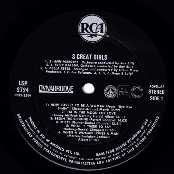 A1. Ann Margret - How Lovely To Be A Woman 2:22 A2. Ann Margret - I'm In The Mood For Love 3:11 A3. Kitty Kallen - Begin The Beguine 4:03 A4. Kitty Kallen - Misty 2:41 A5. Della Reese - What Is There To Say 3:40 A6. Della Reese - When A Woman Loves A Man 3:02 B1. Ann Margret - The Best Is Yet To Come 3:12 B2. Ann Margret - I Really Don't Want To Know 2:42 B3. Kitty Kallen - It Amazes Me 3:58 B4. Kitty Kallen - True 3:02 B5. Della Reese - I Hadn't Anyone Till You 3:17 B6. Della Reese - I Get The Blues When It Rains 3:18
