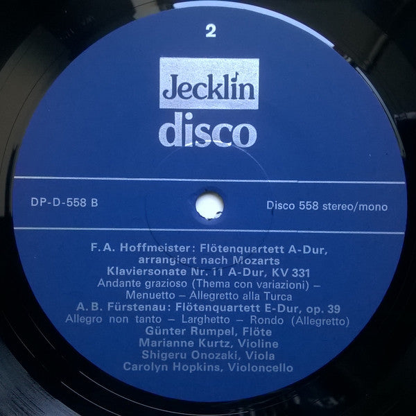 Anton Bernhard Fürstenau, Joseph Haydn, Franz Anton Hoffmeister ‎– Günter Rumpel, Marianne Kurtz, Shigeru Onozaki, Carolyn Hopkins - Virtuose Flötenquartette (LP)