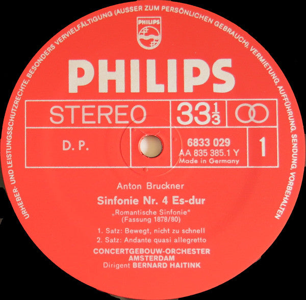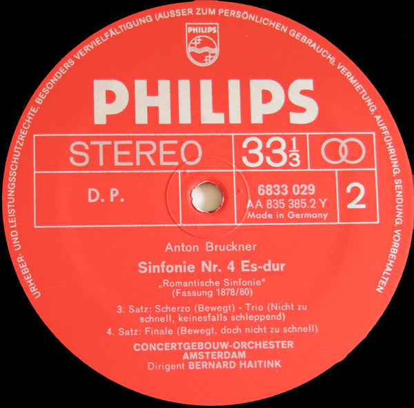 Anton Bruckner ; Concertgebouworkest, Bernard Haitink - Romantische Sinfonie (Nr.4 Es-Dur) (LP)