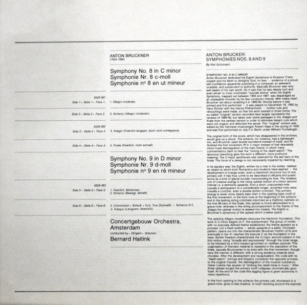 On back & top spine: 6725 014 ·3LP· Bruckner · Symphonies Nos. 8 & 9 · Haitink Philips