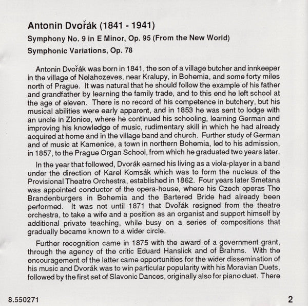 Recorded at the Reduta Concert Hall in Bratislava on 1st & 2nd March, 1989 (Op. 95) & on 10th & 11th November, 1989 (Op. 78).