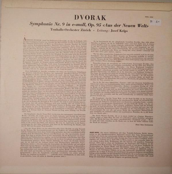 Antonín Dvořák, Tonhalle-Orchester Zürich, Josef Krips - Symphonie Nr. V E-moll Aus Der Neuen Welt (LP, Mono)