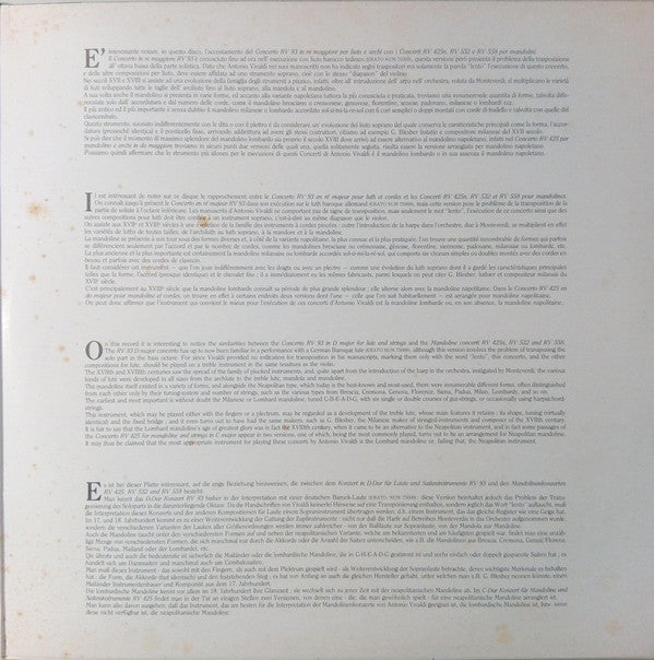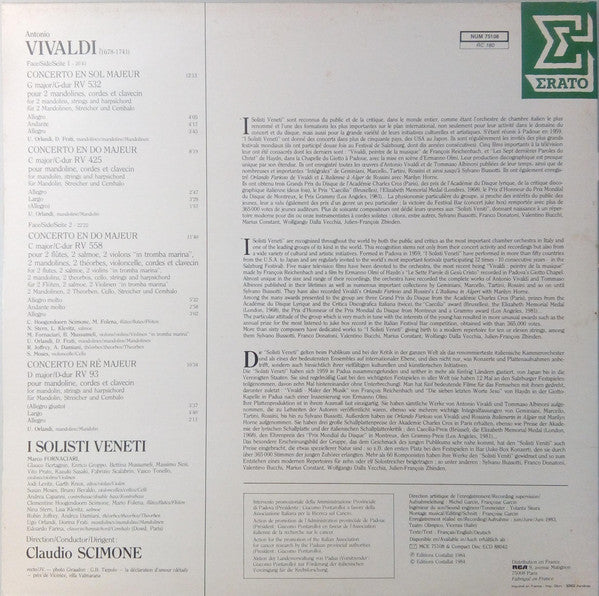 . Concerto En Sol Majeur RV 532 Pour 2 Mandolines, Cordes Et Clavecin 12:13. Concerto En Do Majeur RV 425 Pour Mandoline, Cordes Et Clavecin 8:19. Concerto En Do Majeur RV 558 Pour 2 Flutes, 2 Salmoe, 2 Violons In Tromba Marina, 2 Mandolines, 2 Theorbes, Violoncelle, Cordes Et Clavecin 11:40. Concerto En Re Majeur RV 93 Pour Mandoline, Cordes Et Clavecin 10:34