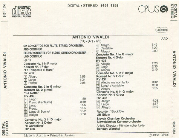 Antonio Vivaldi - Jiří Stivín, Slovak Chamber Orchestra, Bohdan Warchal