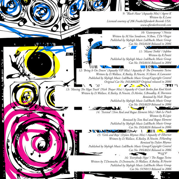 1. The Breakfastaz - The Pressure (King Roc Mix) 2. Jim Shimmer - The Quad (Future Funk Squad & High Eight Mix) 3. Transformer Man - Giant 4. Baitercell & Schumacher - Lock And Load 5. Aquasky - Addiction VIP (Chris Carter Mix) 6. Jim Shimmer - Space Races VIP 7. Backdraft (5) - Popcorn 8. Tayo - Wildlife Dub 9. Agent-K - Black Haze (Aquasky Mix) 10. Noisia - Gutterpump 11. Infekto - Miami Treble 12. Aquasky, Drumattic Twins - Bring It On Down (Aquasky VIP Mix) 13. Aquasky, Crash Berlin - Moving The Hype Track (Nick Thayer Mix) 14. Rob Le Pitch - Twisted (Tom Real & Rogue Element Mix) 15. Aquasky, Elhornet - Girls And Boys (Dylan Rhymes Mix) 16. The Ragga Twins - Everybody Hype