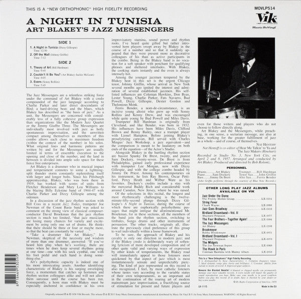 A1. A Night In Tunisia 12:50 A2. Off The Wall 7:12 B1. Theory Of Art 9:45 B2. Couldn't It Be You? 8:05 B3. Evans 5:45