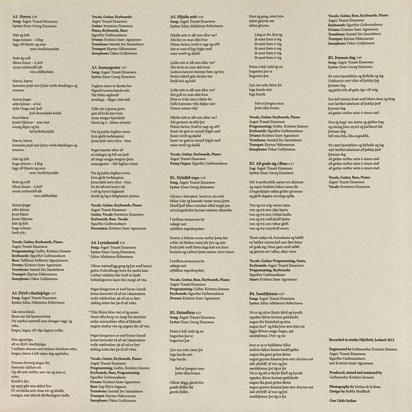 A1. Hærra 3:28 A2. Dýrð Í Dauðaþögn 3:57 A3. Sumargestur 3:57 A4. Leyndarmál 3:39 A5. Hljóða Nótt 3:58 B1. Nýfallið Regn 3:39 B2. Heimförin 4:53 B3. Að Grafa Sig Í Fönn 4:13 B4. Samhljómur 4:25 B5. Þennan Dag 3:49
