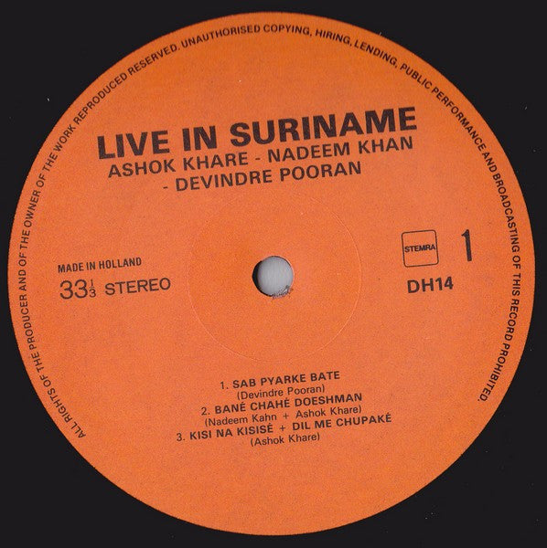 A1. Devindra Pooran - Sab Pyarke Bate A2. Nadeem Khan, Ashok Khare - Bané Chahé Doeshman A3. Ashok Khare - Kisi Na Kisisé + Dil Me Chupaké B1. Nadeem Khan - Dua Dua Dua B2. Ashok Khare - Kaun Hai Jo Sapno Mé B3. Devindra Pooran - Jawoe Kaha Bataé Dil B4. Ashok Khare, Celia Samaroo - Dekho Abto