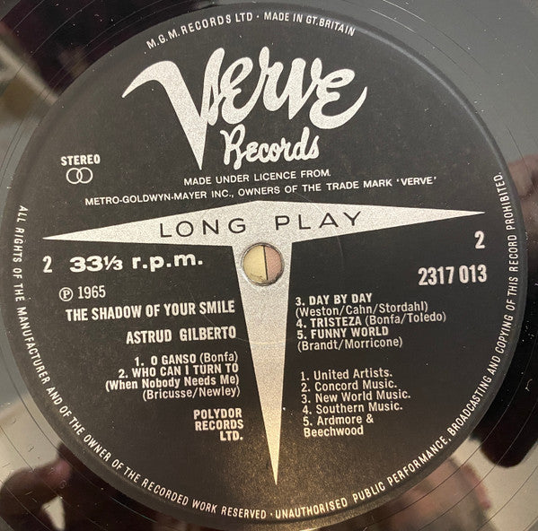 A1. The Shadow Of Your Smile (Love Theme From "The Sandpiper") A2. (Take Me To) Aruanda A3. Manha De Carnaval A4. Fly Me To The Moon A5. The Gentle Rain A6. Non-Stop To Brazil B1. O Ganso B2. Who Can I Turn To? B3. Day By Day B4. Tristeza B5. Funny World (Theme From "Malamondo")