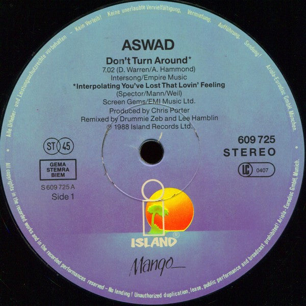 A. Don't Turn Around (Remix) 7:02B1. Woman 4:28B2. Don't Turn Around 3:25
