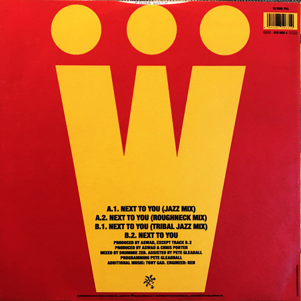 A1. Next To You (Jazz Mix) 4:47 A2. Next To You (Roughneck Mix) 4:44 B1. Next To You (Tribal Jazz Mix) 4:13 B2. Next To You 3:35