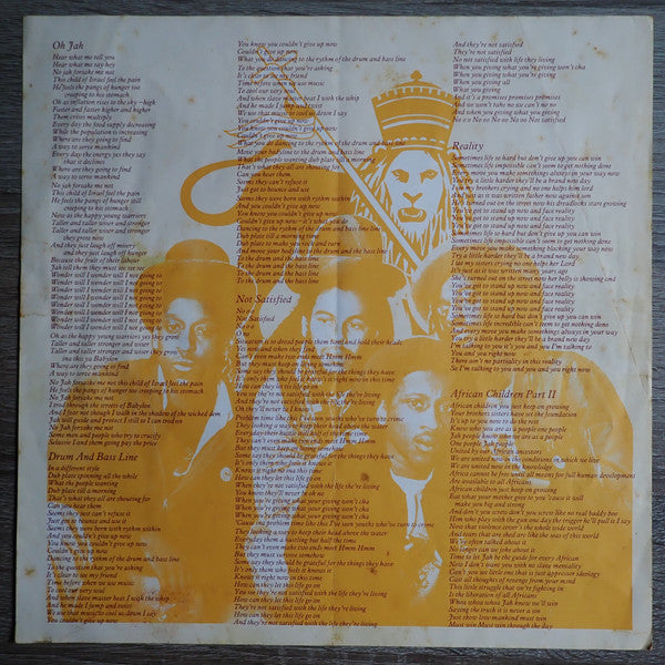 A1. Oh Jah A2. Drum And Bass Line A3. Not Satisfied A4. Reality A5. African Children (Part 2) B1. Pass The Cup B2. I Need Your Love B3. No More Living A Lie B4. Down The Line B5. Your Recipe B6. Girl's Got To Know