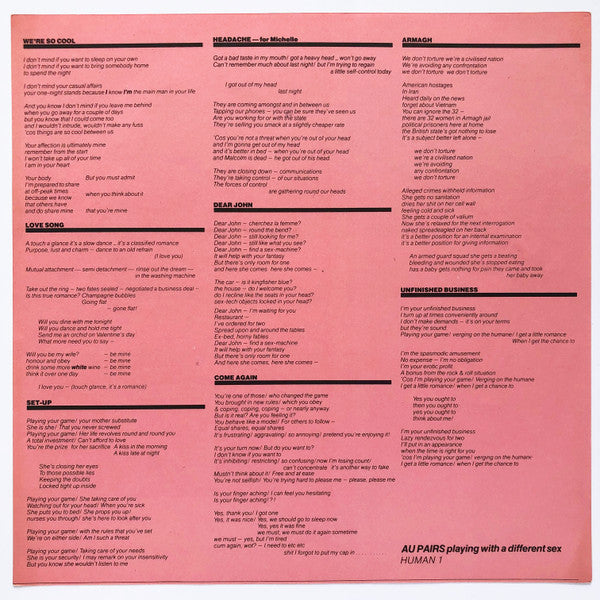 Au Pairs - Playing With A Different Sex (LP, Album, Lyn)