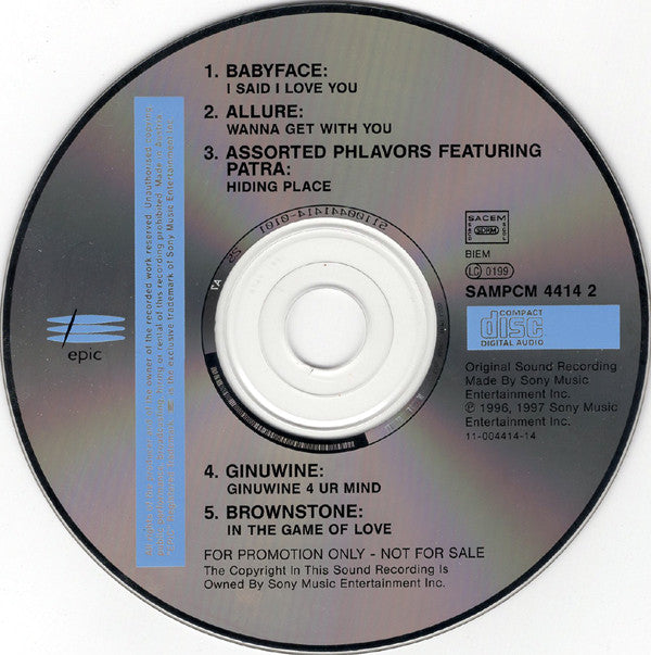 1-1. Babyface - Every Time I Close My Eyes 4:561-2. Babyface - Talk To Me 4:541-3. Babyface - I Said I Love You 4:051-4. Babyface - When Your Body Gets Weak 5:401-5. Babyface - Simple Days 4:311-6. Babyface - All Day Thinkin' 4:231-7. Babyface - Seven Seas 4:021-8. Babyface - The Day (That You Gave Me A Son) 4:291-9. Babyface - How Come, How Long 5:111-10. Babyface - This Is For The Lover In You 4:012-1. Babyface - I Said I Love You 4:062-2. Allure (3) - Wanna Get With You 4:382-3. Assorted Phlavors - Hiding Place 4:302-4. Ginuwine - Ginuwine 4 Ur Mind 5:262-5. Brownstone - In The Game Of Love 4:44