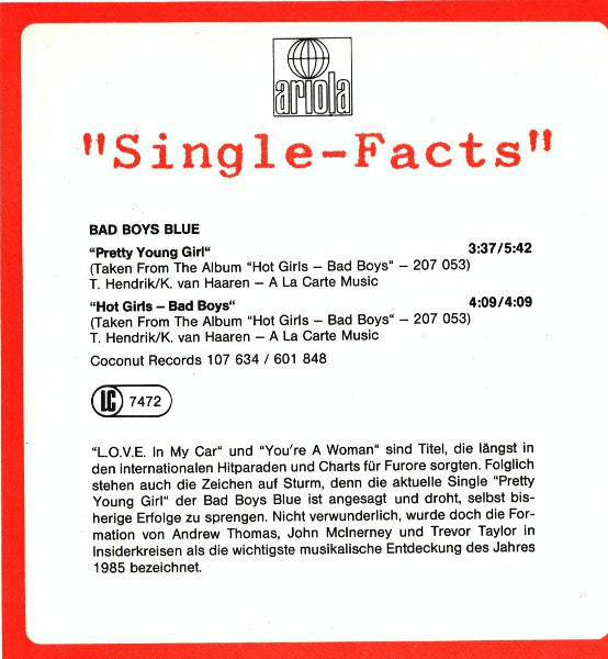 Bad Boys Blue - Pretty Young Girl (7", Single)