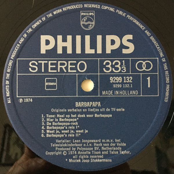 "A creation of Annette Tison and Talus Taylor." ⓟ1974 ⓒ1974 M.m.v. het televisiekinderkoor o.l.v. Henk van der Velde.