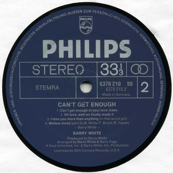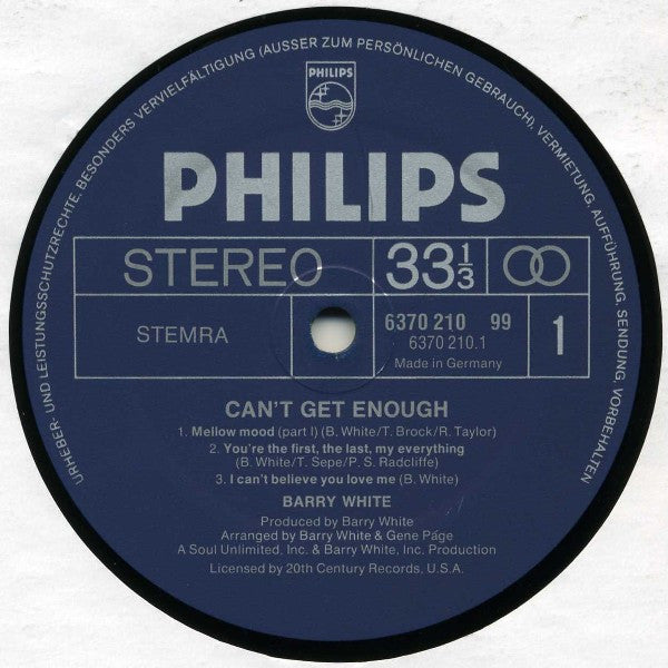 A1. Mellow Mood (Pt. I) 1:53 A2. You're The First, The Last, My Everything 4:37 A3. I Can't Believe You Love Me 10:23 B1. Can't Get Enough Of Your Love, Babe 4:31 B2. Oh Love, Well We Finally Made It 3:54 B3. I Love You More Than Anything (In This World Girl) 5:02 B4. Mellow Mood (Pt. II) 1:23