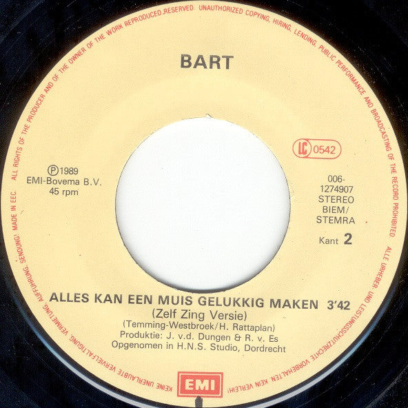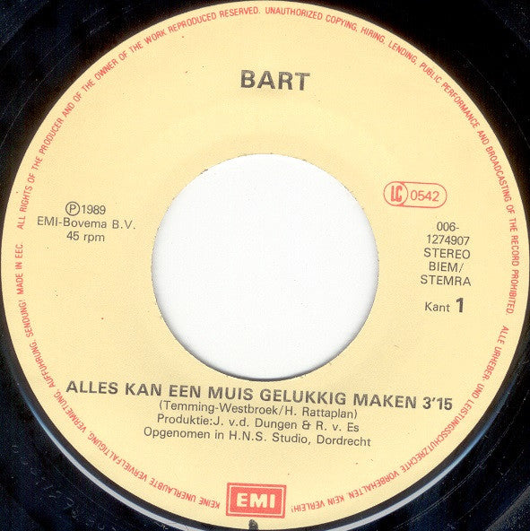 Phonographic Copyright (p) EMI-Bovema B.V. Copyright (c) EMI-Bovema B.V. Marketed By EMI Manufactured By EMI Distributed By EMI Printed By EMI Services Benelux B.V. Recorded At H.N.S. Studio