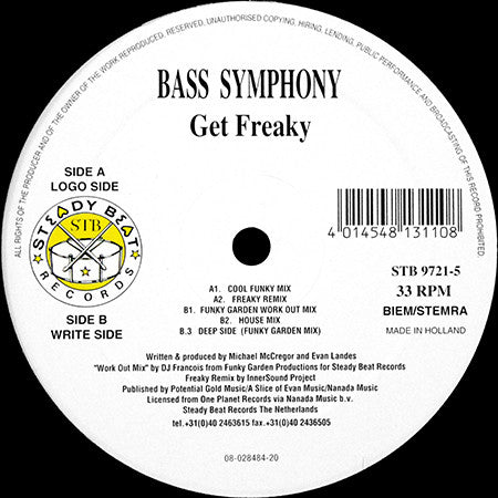 A1. Get Freaky (Cool Funky Mix) A2. Get Freaky (Freaky Remix) . Write Side B1. Get Freaky (Funky Garden Work Out Mix) B2. Get Freaky (House Mix) B3. Deep Side (Funky Garden Mix)
