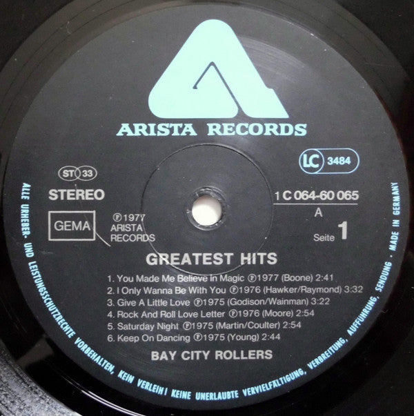 A1. You Made Me Believe In Magic 2:41 A2. I Only Want To Be With You 3:32 A3. Give A Little Love 3:22 A4. Rock And Roll Love Letter 2:54 A5. Saturday Night 2:54 A6. Keep On Dancing 2:44 B1. It's A Game 2:59 B2. Money Honey 3:16 B3. Yesterday's Hero 4:29 B4. Summer Love Sensation 3:10 B5. Love Me Like I Love You 3:20 B6. Bye Bye Baby 2:54