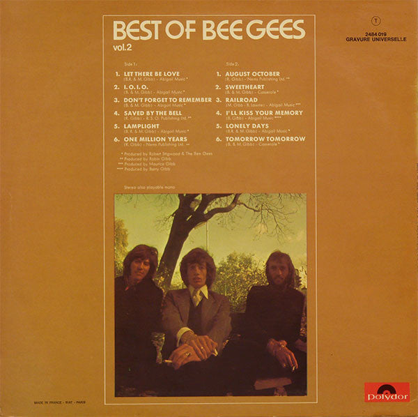 A1. Bee Gees - Let There Be Love 3:30 A2. Bee Gees - I.O.I.O. 2:52 A3. Bee Gees - Don't Forget To Remember 3:27 A4. Robin Gibb - Saved By The Bell 3:03 A5. Bee Gees - Lamplight 4:47 A6. Robin Gibb - One Million Years 4:05 B1. Robin Gibb - August October 2:31 B2. Bee Gees - Sweetheart 3:08 B3. Maurice Gibb - Railroad 3:43 B4. Barry Gibb - I'll Kiss Your Memory 4:25 B5. Bee Gees - Lonely Days 3:46 B6. Bee Gees - Tomorrow, Tomorrow 3:55