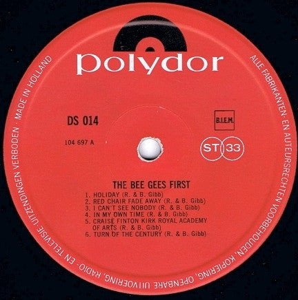A1. Holiday A2. Red Chair Fade Away A3. I Can't See Nobody A4. In My Own Time A5. Craise Finton Kirk Royal Academy Of Arts A6. Turn Of The Century B1. Massachusetts B2. Please Read Me B3. To Love Somebody B4. I Am The World B5. Close Another Door B6. Spicks And Specks