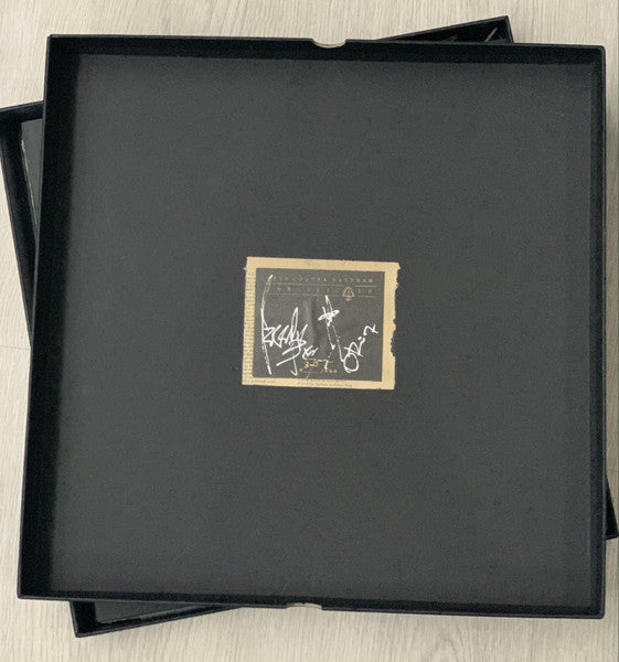 Behemoth webstore exclusive boxset. Limited to 666 hand-numbered copies. Signed by Nergal, Orion and Inferno. An exclusive BOX edition limited to 666 items worldwide, numbered, signed by Nergal, Inferno and Orion. Packed in a black matte exclusive box with a gold hot stamp print. It contains: - Behemoth 'Opvs Contra Natvram' 1 LP Gatefold LUX WHITE Ink-Spot Clear/Silver vinyl record.180g Vinyl in lavish gatefold featuring white artwork and hot foil stamping, embossing and UV varnish, including 20page booklet. - Behemoth 'Opvs Contra Natvram' Digibook CD, NOX version. Limited edition CD Digibook featuring black artwork and lavish hot foil stamping, debossing and UV varnish, 36page booklet and special gold disc. - Camera Obscvra prints set. - 3x 30,5x30,5cm band members portraits (high quality analog offset prints on 350g FSC certified artpaper plus special gloss varnish) - 1x 30,5x30,5cm photo with front cover (high quality photo from certified lab on pearl/metallic photo paper) - Black wrap and gold embossed Contra sticker. - "O'DEATH" - letterpress artisan handmade print. Printed on 400+ years old handmade paper sourced from ancient greek and latin books from year 1618. Art and hand printed by Bartek Rogalewicz at Lodge. Black Temple on manual vintage woodcut press; dimensions approx 25x37cm (may slightly vary from a piece to piece). Custom made black ink with ashes of old crucifix. Hand numbered and signed with copper gold ink wrapped in black tracing paper. - Behemoth 'Opvs Contra Natvram' highest quality print on metal plate, LUX version. The metal plate is of a size of the vinyl record and can be sticked to the wall like a poster with attached, very strong magnets. - Set of 3 guitar picks - Nergal, Orion and Seth. - 'Off to War' patch - A certificate with hand-written number of the box, signed by Nergal, Orion and Inferno.