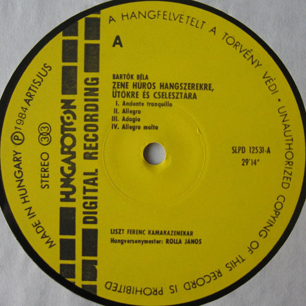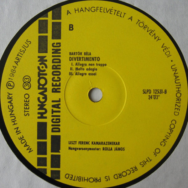 Recorded At Franz Liszt Conservatory, Budapest Phonographic Copyright (p) Hungaroton Made By Mahir Printed By Sylvester János Nyomda