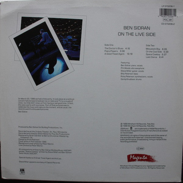A1. The Doctor's Blues 4:10 A2. Piano Players 3:00 A3. A Good Travel Agent 13:19 B1. Mitsubishi Boy 6:05 B2. On The Cool Side 5:23 B3. Space Cowboy 5:27 B4. Last Dance 6:41