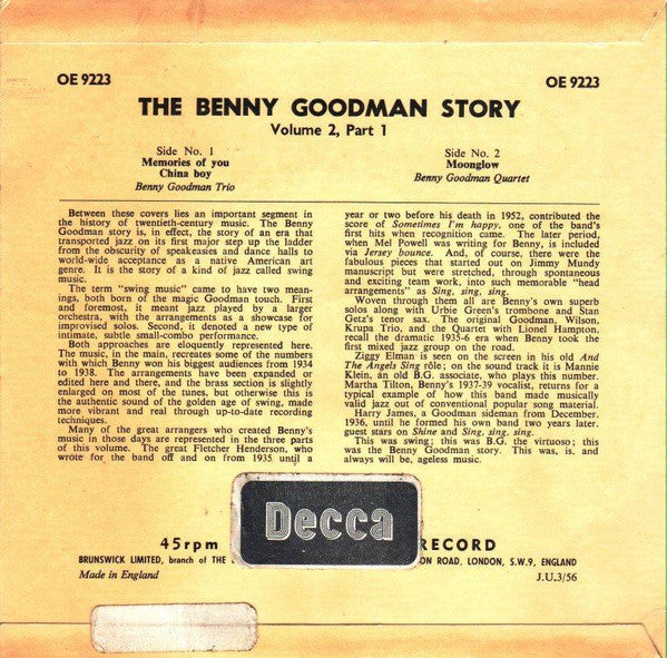 A1. Benny Goodman Trio - Memories Of You A2. Benny Goodman Trio - China Boy B. The Benny Goodman Quartet - Moonglow