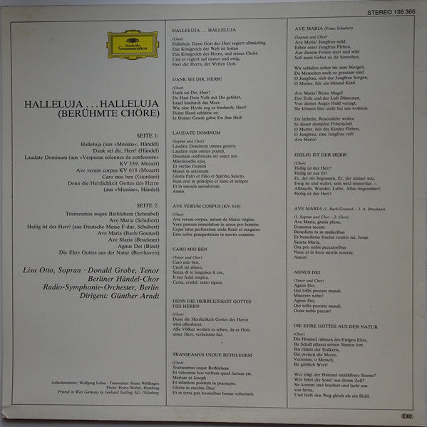A1. Halleluja (Aus »Messias«) A2. Dank Sei Dir, Herr! A3. Laudate Dominum (Aus »Vesperae Solennes De Confessore« KV 339) A4. Ave Verum Corpus KV 618 A5. Caro Mio Ben A6. Denn Die Herrlichkeit Gottes Des Herrn (Aus »Messias«) B1. Transeamus Usque Bethlehem B2. Ave Maria B3. Heilig Ist Der Herr! (Aus Deutsche Messe F-dur) B4. Ave Maria B5. Ave Maria B6. Agnus Dei B7. Die Ehre Gottes Aus Der Natur