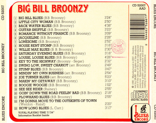 1. Big Bill Blues 3:242. Little City Woman 2:503. Back Water Blues 4:384. Guitar Shuffle 3:235. Romance Without Finance 3:096. Jacqueline 2:287. Lonesome 2:528. House Rent Stomp 3:169. Willie Mae Blues 2:3010. Saturday Evening Blues 3:1611. Louise, Louise Blues 4:2612. Key To The Highway 2:3213. Swing Low, Sweet Chariot 2:4914. Stump Blues 3:4715. Mindin' My Own Business 2:5416. Joe Turner Blues 5:2317. Makin' My Getaway 3:1018. Boogie Woogie 1:0219. See See Rider 2:5520. Goin' Down The Road Feelin' Bad 2:1821. Plowhand Blues 2:5522. I'm Gonna Move To The Outskirts Of Town 2:2023. How Long Blues 3:17