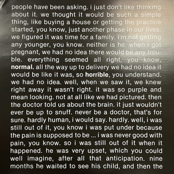 180g vinyl repressing by Green Vinyl Records. Spot varnished outer sleeve. Record housed in white poly-lined inner sleeve. Includes 11" x 11" text insert and download code on separate paper insert. Labels on vinyl appear to be stickers attached post-pressing. T&G#20 on spine, T&G20 on labels. Two stickers on front cover: BIG BLACK HEADACHE Remastered by Steve Albini and Bob Weston at Chicago Mastering Includes Full EP Download Coupon [Barcode This 180 Gram Touch and Go Records album is made with 100% Recyclable Material which is PVC & Phthalates Free and uses 79% less CO2 to produce. Manufactured at Green Vinyl Records [TOUCH and GO RECORDS