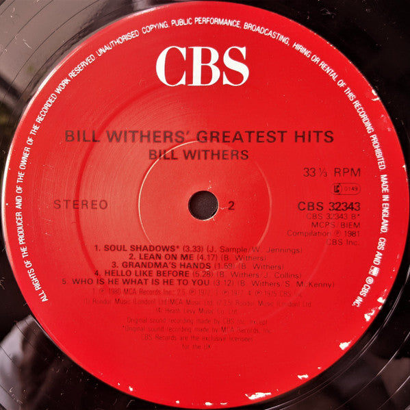 A1. Just The Two Of Us 3:56 A2. Use Me 3:45 A3. Ain't No Sunshine 2:03 A4. Lovely Day 4:14 A5. I Want To Spend The Night 3:41 B1. Soul Shadows 3:33 B2. Lean On Me 4:17 B3. Grandma's Hands 1:59 B4. Hello Like Before 5:28 B5. Who Is He What Is He To You 3:12
