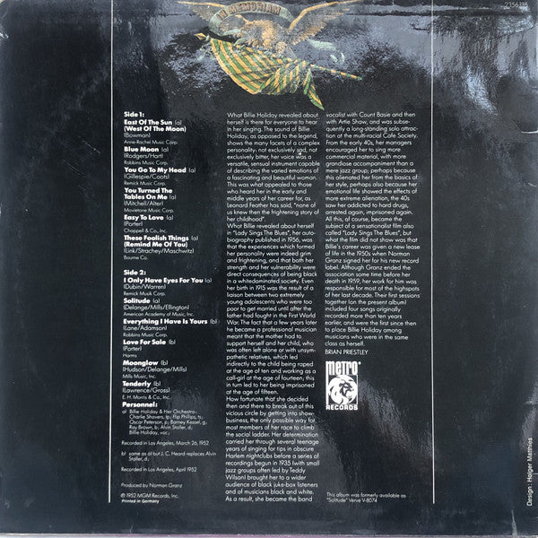 A1. East Of The Sun (West Of The Moon) A2. Blue Moon A3. You Go To My Head A4. You Turned The Tables On Me A5. Easy To Love A6. These Foolish Things (Remind Me Of You) B1. I Only Have Eyes For You B2. Solitude B3. Everything I Have Is Yours B4. Love For Sale B5. Moonglow B6. Tenderly