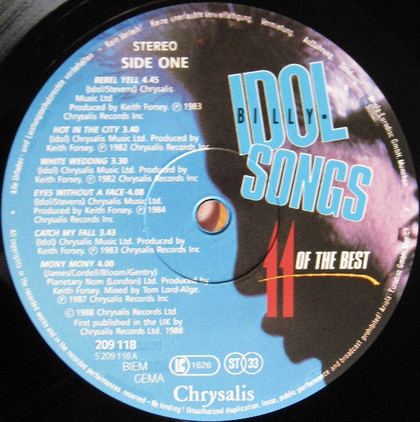A1. Rebel Yell 4:45 A2. Hot In The City 3:40 A3. White Wedding 3:30 A4. Eyes Without A Face 4:08 A5. Catch My Fall 3:43 A6. Mony Mony 4:00 B1. To Be A Lover 3:51 B2. Sweet Sixteen 4:14 B3. Flesh For Fantasy 3:47 B4. Don't Need A Gun 4:30 B5. Dancing With Myself 3:16