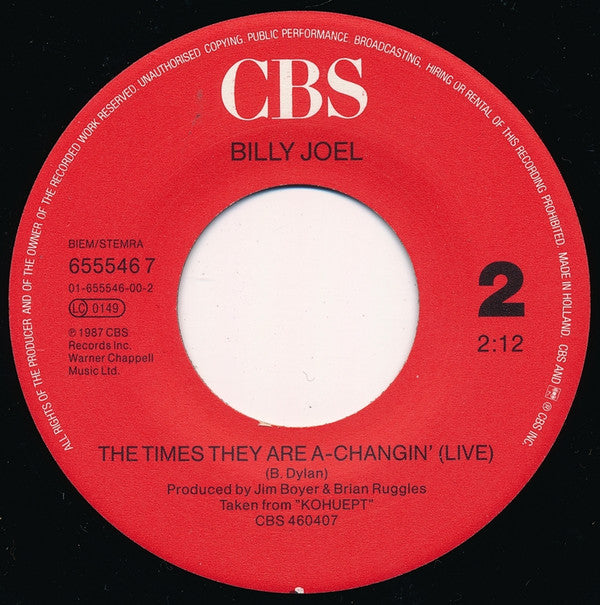 Copyright (c) CBS United Kingdom Ltd.Phonographic Copyright (p) CBS Inc.Phonographic Copyright (p) CBS Records Inc.Record Company CBS Inc.Distributed By CBS RecordsPublished By EMI Songs Ltd.Published By Joel SongsPublished By Warner Chappell Music Ltd.Pressed By CBS, HaarlemData provided by Discogs
