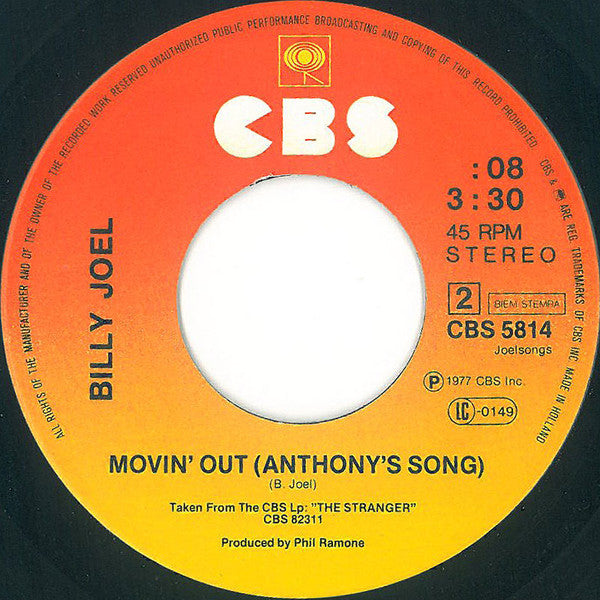 ℗ 1977 CBS Inc. / © 1977 CBS Inc. / Printed in Holland Joelsongs Taken From The CBS Lp: "57029" CBS 82311 Made in Holland Cat# listed as "5814" on sleeve, but as "CBS 5814" on the labels.