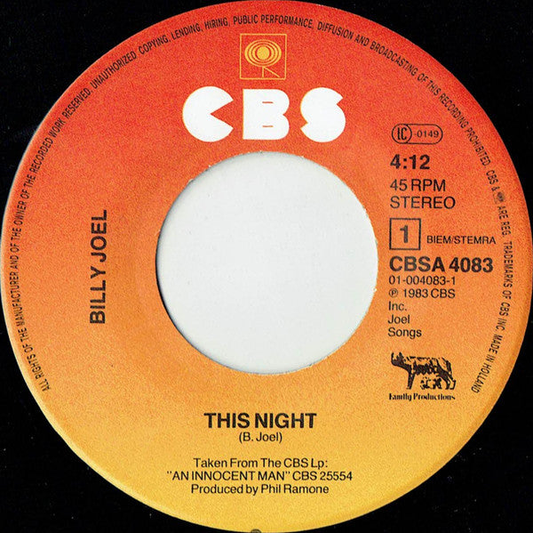 Phonographic Copyright (p) CBS Inc.Copyright (c) CBS Inc.Distributed By CBS RecordsDistributed By CBS Disques S.A.Published By Joel SongsPublished By Maclen Music, Inc.Pressed By CBS, HaarlemData provided by Discogs