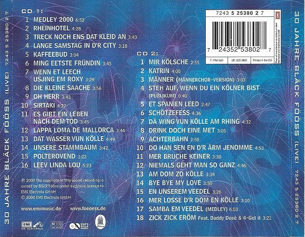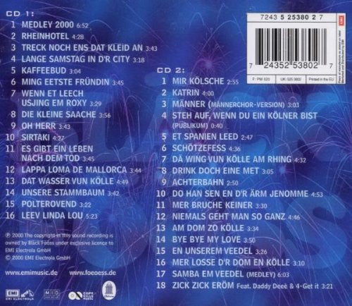 1-1. Medley 2000 6:521-2. Rheinhotel 4:281-3. Treck Noch Ens Dat Kleid An 3:441-4. Lange Samstag In D'r City 3:181-5. Kaffeebud 3:051-6. Ming Eetste Fründin 3:451-7. Wenn Et Leech Usjing Em Roxy 3:301-8. Die Kleine Saache 3:561-9. Oh Herr 3:431-10. Sirtaki 4:281-11. Es Gibt Ein Leben Nach Dem Tod 3:461-12. Lappa Loma De Mallorca 3:441-13. Dat Wasser Vun Kölle 4:491-14. Unsere Stammbaum 3:431-15. Polterovend 3:231-16. Leev Linda Lou 5:232-1. Mir Kölsche 2:552-2. Katrin 4:002-3. Männer 3:032-4. Steh Auf, Wenn Du Ein Kölner Bist 0:402-5. Et Spanien Leed 2:472-6. Schötzefess 4:362-7. Dä Wing Vun Kölle Am Rhing 4:322-8. Drink Doch Eine Met 3:052-9. Achterbahn 2:502-10. Do Han Sen En D'r Ärm Jenomme 4:532-11. Mer Bruche Keiner 3:302-12. Niemals Geht Man So Ganz 4:462-13. Am Dom Zo Kölle 3:342-14. Bye Bye My Love 3:502-15. En Unserem Veedel 3:262-16. Mer Losse D'r Dom En Kölle 3:102-17. Samba Em Veedel 6:032-18. Zick Zick Eröm 3:21