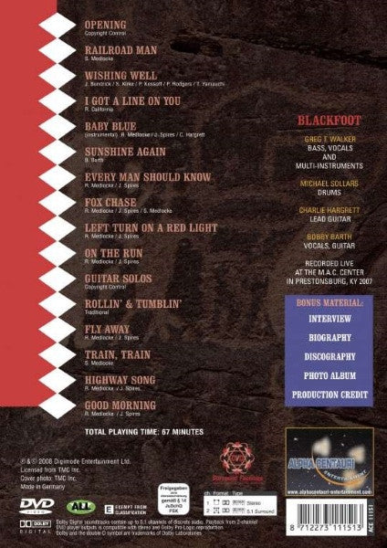 DVD-1. Railroad Man DVD-2. Wishing Well DVD-3. I Got A Line On You DVD-4. Baby Blue DVD-5. Sunshine Again DVD-6. Every Man Should Know DVD-7. Fox Chase DVD-8. Left Turn On A Red Light DVD.9. On The Run DVD-10. Guitar Solos DVD-11. Rollin' & Tumblin' DVD-12. Fly Away DVD-13. Train, Train DVD-14. Highway Song DVD-15. Good Morning