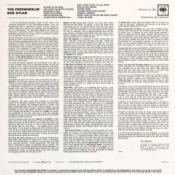 A1. Blowin' In The Wind A2. Girl From The North Country A3. Masters Of War A4. Down The Highway A5. Bob Dylan's Blues A6. A Hard Rain's A-Gonna Fall B1. Don't Think Twice, It's All Right B2. Bob Dylan's Dream B3. Oxford Town B4. Talking World War III Blues B5. Corrina, Corrina B6. Honey, Just Allow Me One More Chance B7. I Shall Be Free
