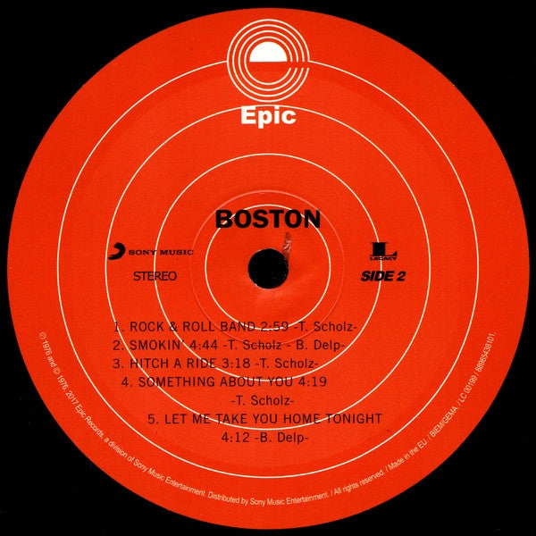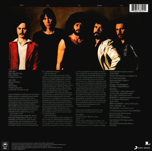 A1. More Than A Feeling 4:44 A2. Peace Of Mind 4:55 A3. Foreplay/Long Time 7:56 B1. Rock & Roll Band 2:59 B2. Smokin' 4:44 B3. Hitch A Ride 3:18 B4. Something About You 4:19 B5. Let Me Take You Home Tonight 4:12